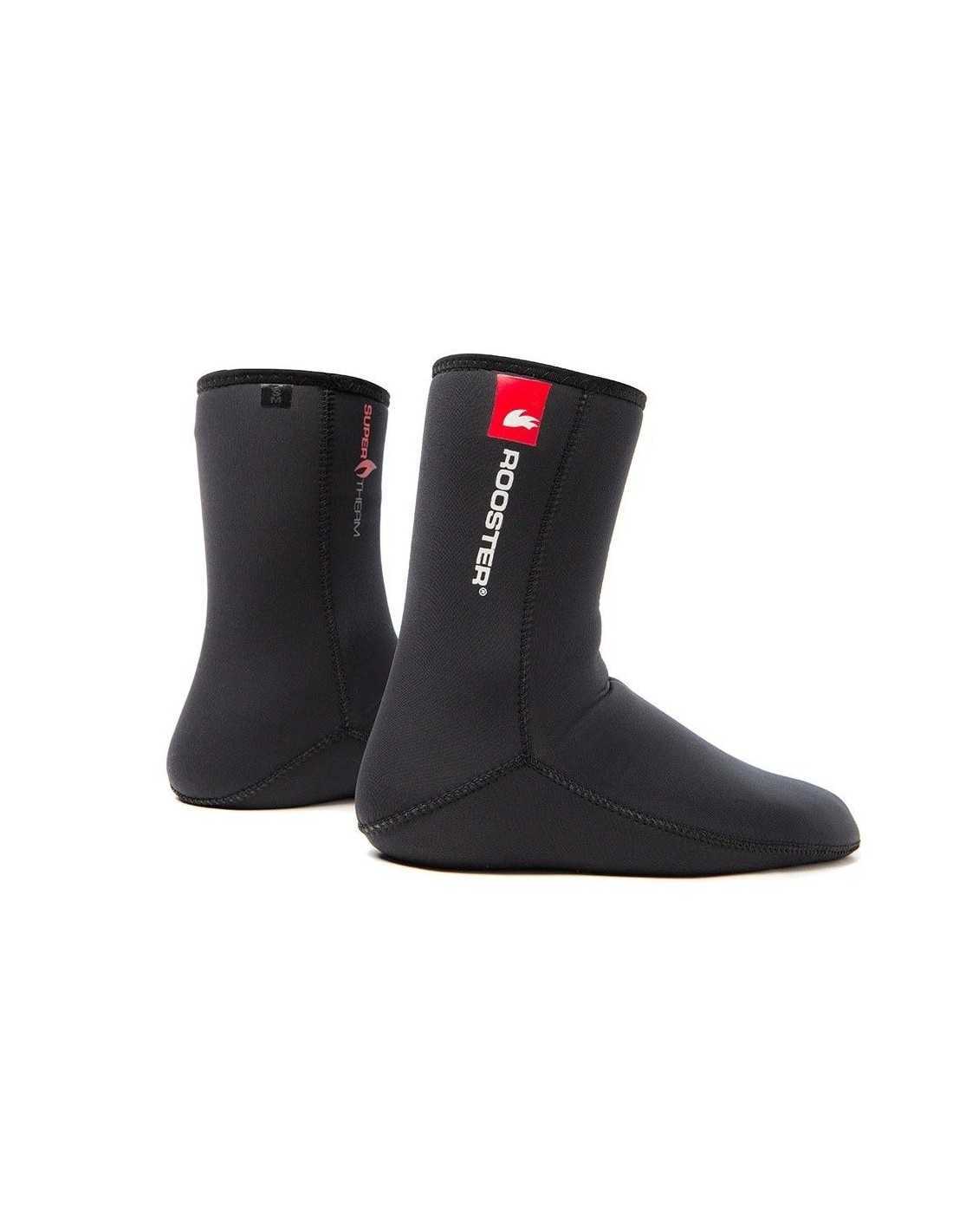 he Rooster Supertherm 4mm Neoprene sock - designed to keep your feet SUPER warm! The superstretch neoprene outer allows these socks to span several shoe sizes making it easier for you to find the correct size - a closer fit means warmer feet! Inside the sock there is a super soft, grey marle, quick-dry lining which not only improves the thermal qualities of the sock, it also feels very soft and comfortable next to your skin.