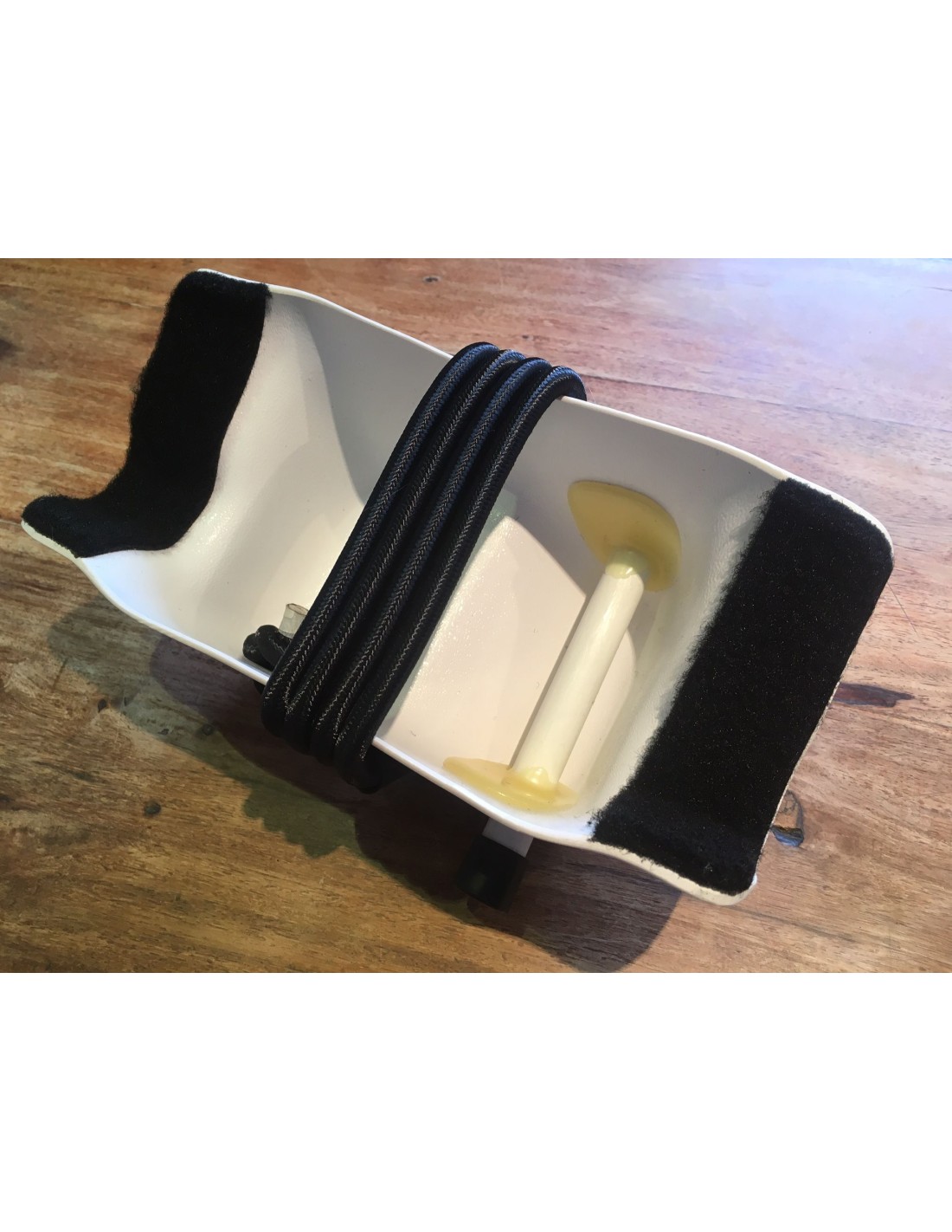 This cradle is a perfect and inexpensive solution for almost all Hobie Cats® as well as many other brands. The fiberglass Mast Cradle is molded to the shape of the rear crossbar and carpeted to protect the mast and crossbar. Securing the mast is quick and easy with integrated shock cord. You will need to remove the tiller crossbar if your boat’s tiller crossbar is above the rear crossbar when your boat’s rudders are locked in the up position.