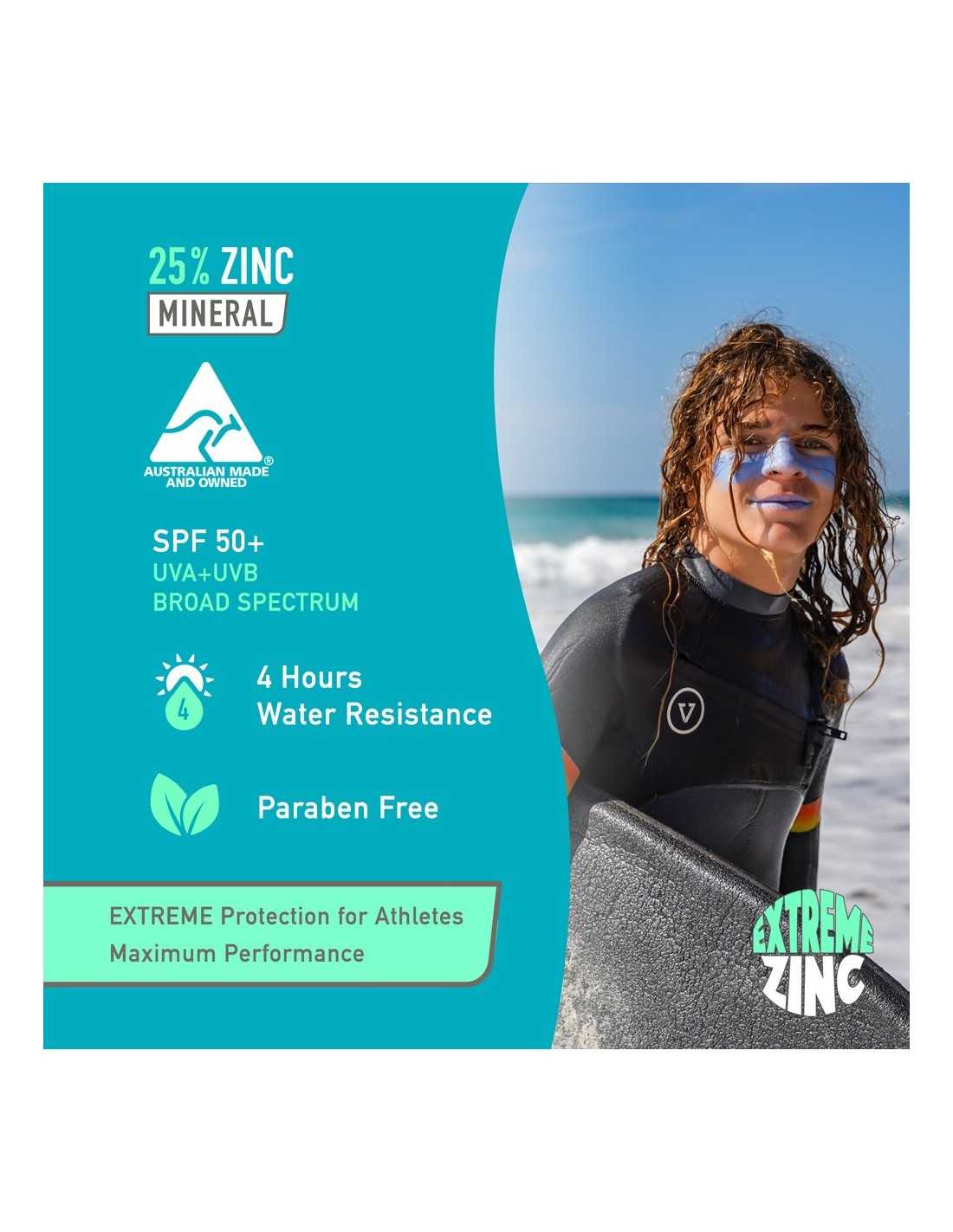 Our Zinc Sticks and Sunscreens are 100% Australian made and have been tested to meet the harsh conditions of our sun, snow, wind and waters. Zinc oxide is a natural sun blocker that stays on your skin for hours when in the water and is a prominent ingredient in our range. It won't burn your eyes and is great for people with sensitive skin conditions. Safe to use on children over 6 months old. Try our bright and colourful SPF 50+ Zinc Sticks on your face and keep your family safe from UVA+UVB rays.