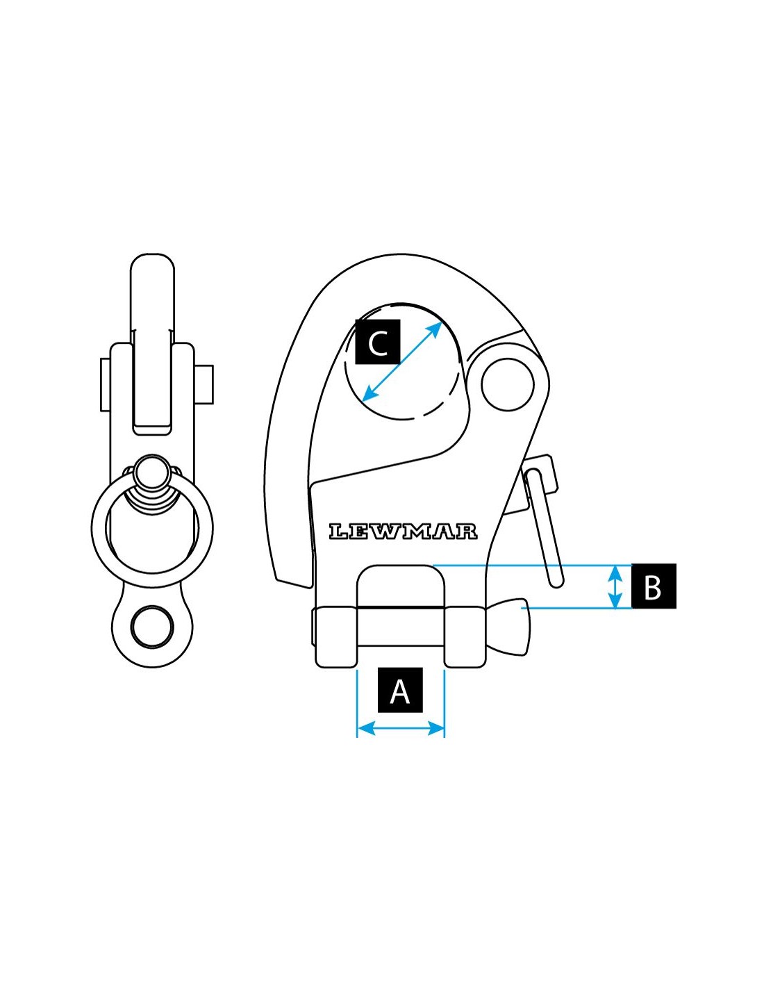 Ce mousqueton s’adapte aux poulies Lewmar des gammes Synchro, Racing et HTX.
